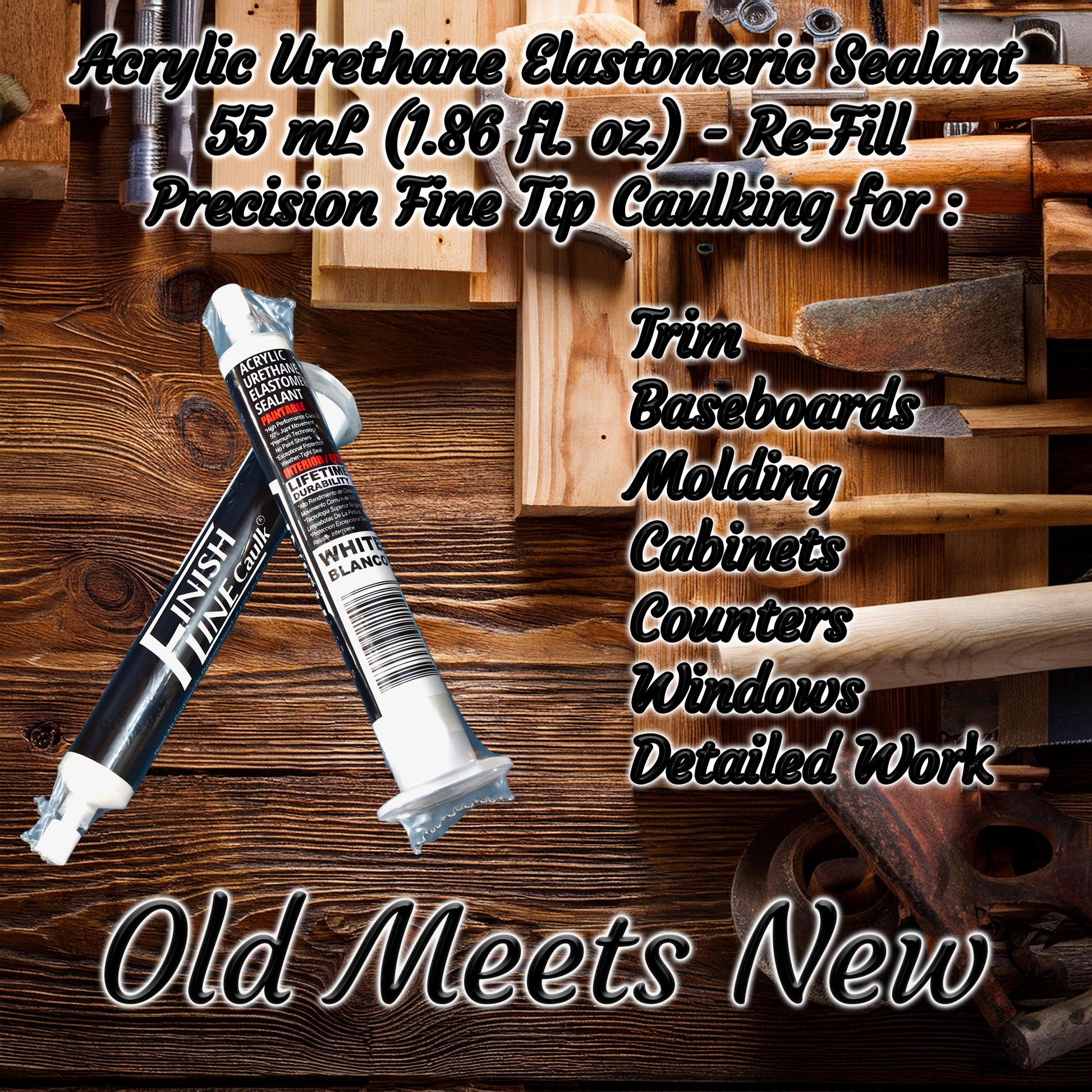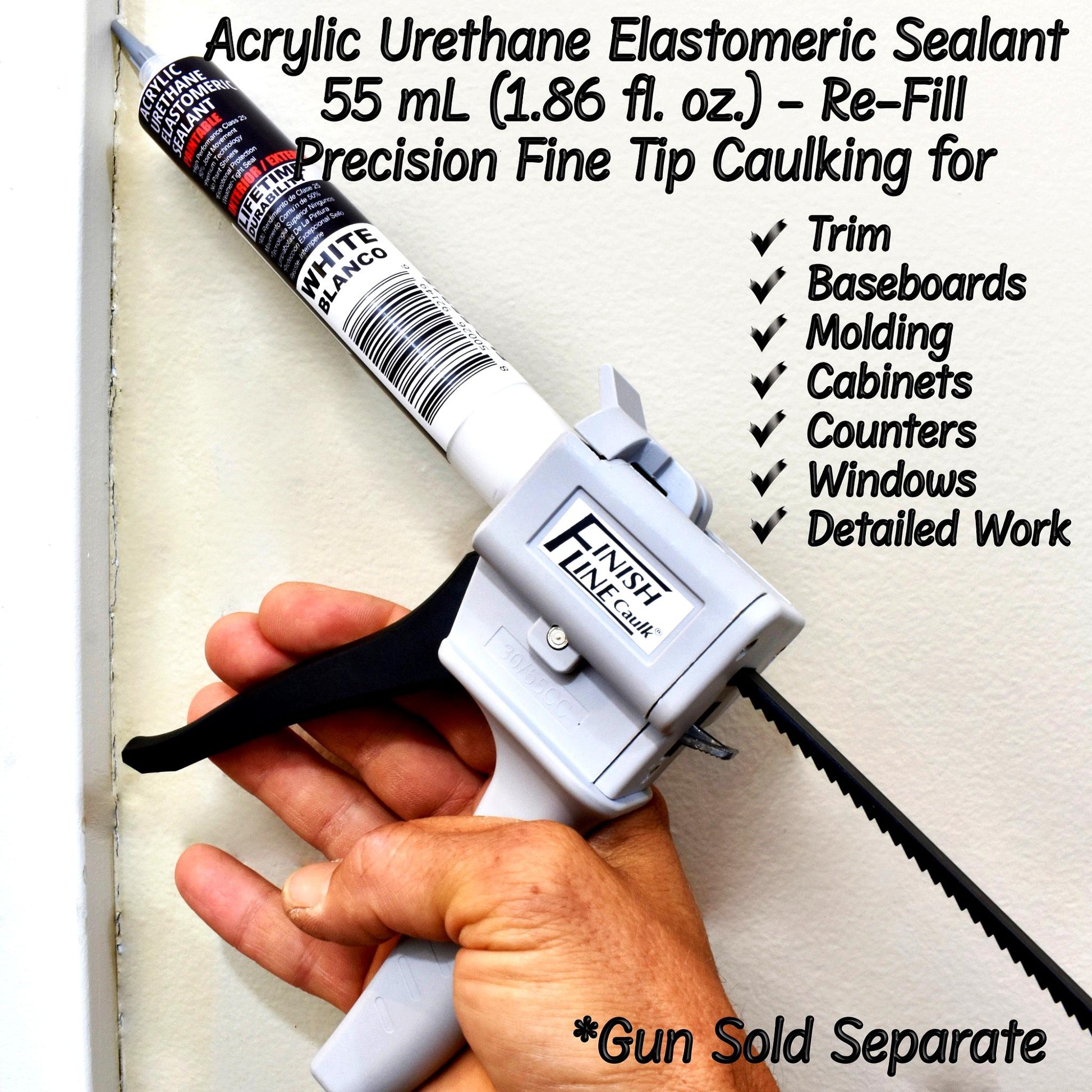 55 mL / 1.86 fl oz refill tubes made for the Finish Line Caulk precision hand dispenser system. Reload your syringe-style applicator for small gaps, trim, metal roof fasteners, RV and marine repairs.